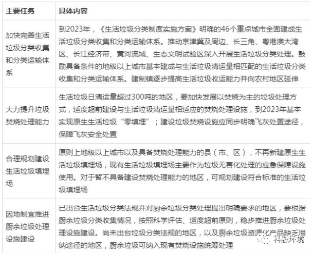 《城镇生活垃圾分类和处理设施补短板强弱项实施方案》的主要任务