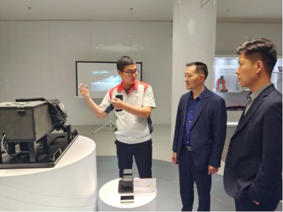 随后董事长一行来到了哈弗技术中心继续考察。哈弗技术中心占地面积26万平方米,总投资50亿元。整个园区主要由研发主楼、试制中心、造型中心、试验中心、数据中心五大板块组成。其中试验中心总投资10亿元,包括环境风洞、高海拔环境模拟、新能源动力总成、电机、电池等世界一流水平的试验室。